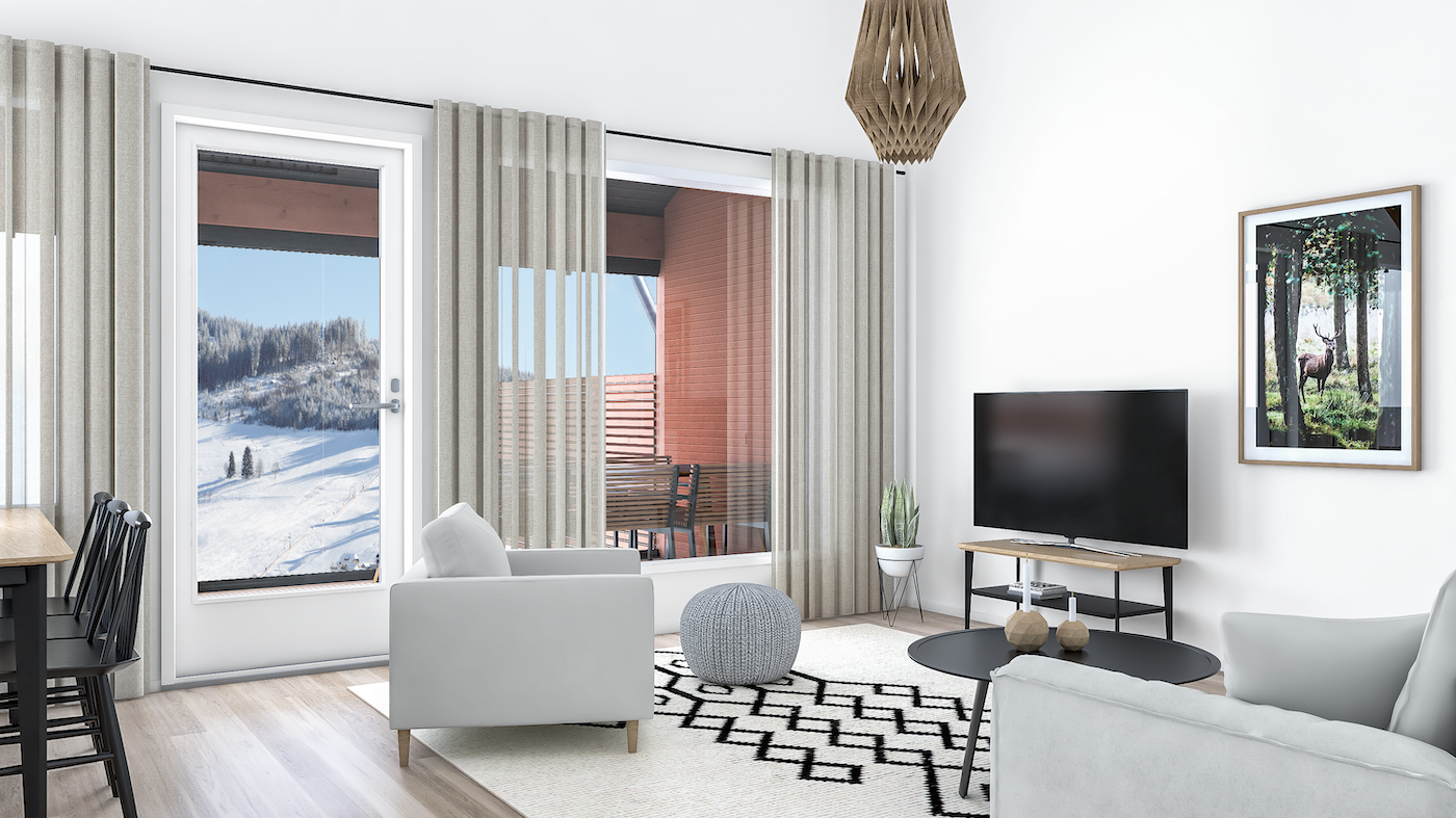 Kohde rakennetaan vaiheittain. Alppirinne 1 on nyt rakenteilla ja valmistuu keväällä 2024. Kohde pitää sisällään 3 rivitaloa/12 asuntoa, missä kolmiot on sijoitettu taloihin A ja C ja isommat neliöt ovat B-talossa. Jokaisessa tulevassakin vaiheessa on mukana molempia asuntokokoja. Rakennuksista osa sijoittuu Patalahden puolelle ja osa taas rinteiden puolelle. Sijainti on siis loistava halusipa sitten nauttia vain oman loma-asunnon rauhasta tai olla lähellä erilaisia aktiviteetteja.